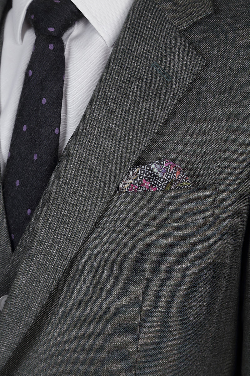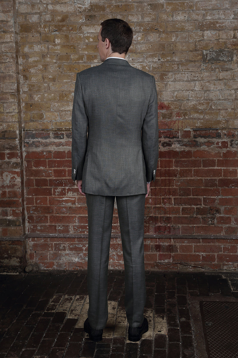 - Half-canvas jacket with padded lapel for a bespoke look.