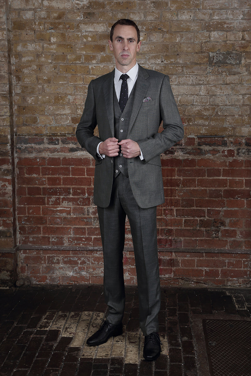 All suits are made from scratch and delivery is made within eight weeks. For our sizing, please see our measuring guide here.