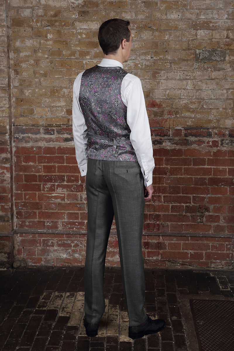 Vegan Tailoring present our signature bamboo suit. Perfect as a business suit or a wedding suit. Made from the finest Italian bamboo cloth, in a light green, with a choice of patterned floral or plain grey lining and light grey Corozo buttons, with option to add a waistcoat.